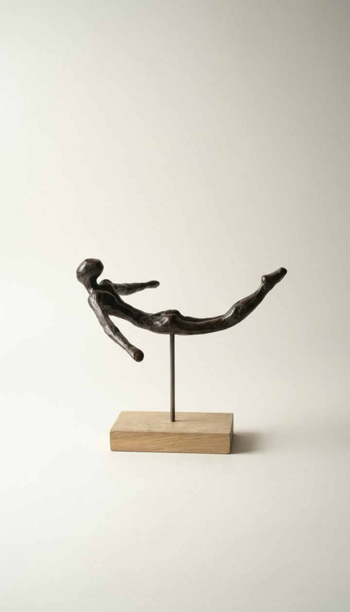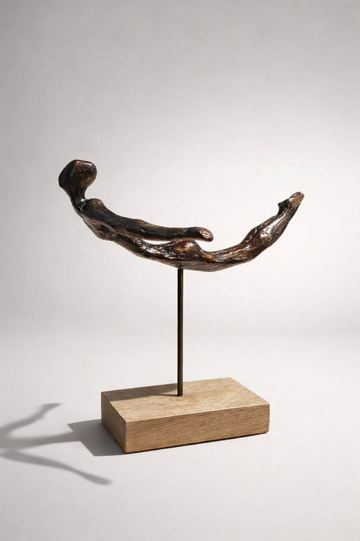 Modern formda tasarlanmış dekoratif metal figür obje, yaşam alanlarına minimal ve sanatsal bir dokunuş kazandırır. Konsol, sehpa veya raf üzerinde şık bir dekoratif tamamlayıcı olarak kullanılabilir.