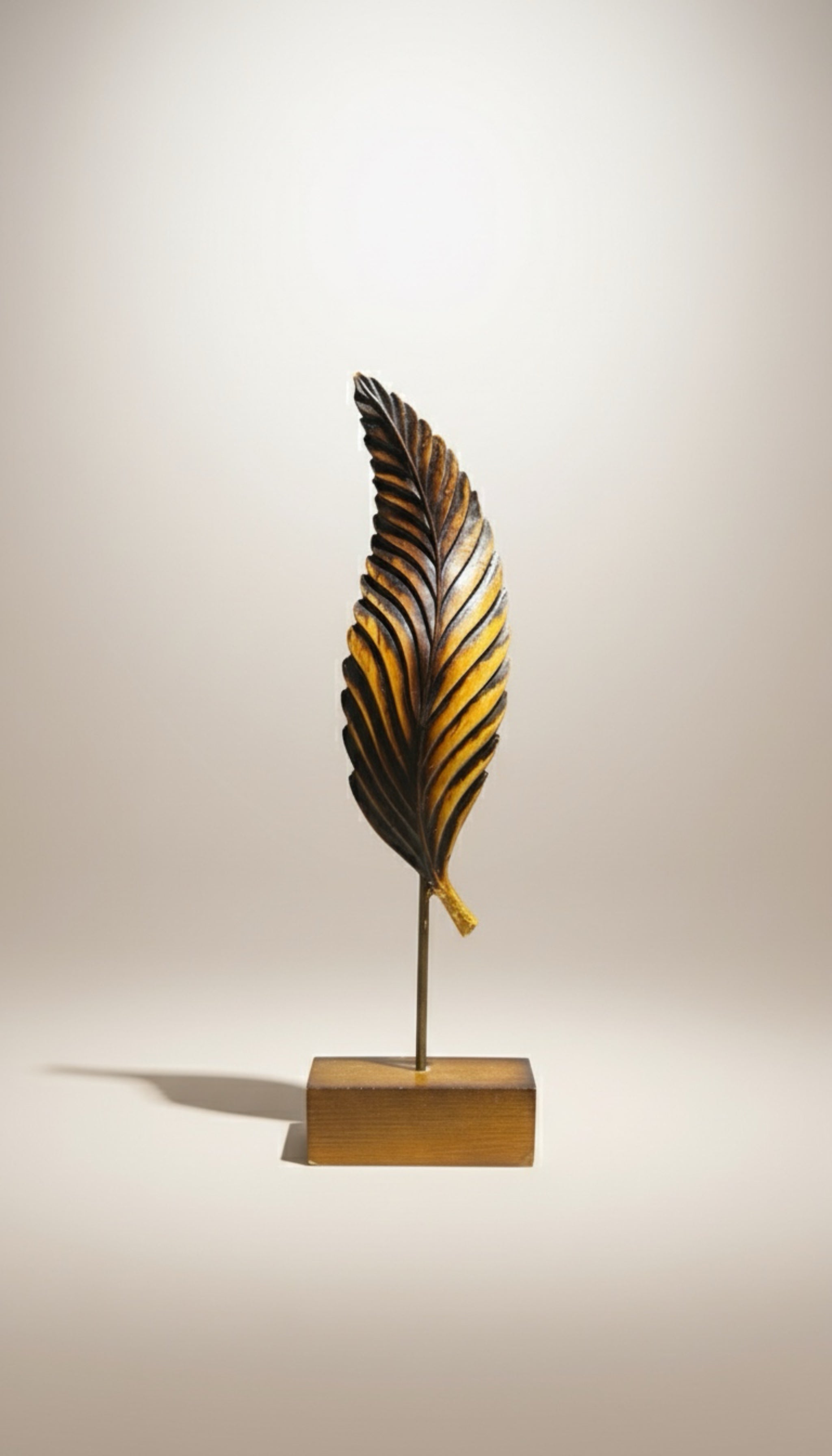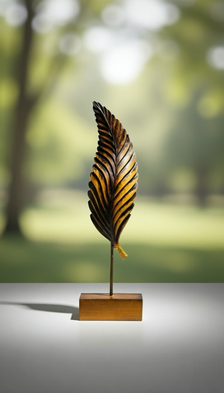 Metal yaprak formunda tasarlanmış dekoratif obje, yaşam alanlarına zarif ve modern bir dokunuş kazandırır. Konsol, sehpa ve raf üzerinde şık bir dekoratif tamamlayıcı olarak kullanılabilir.