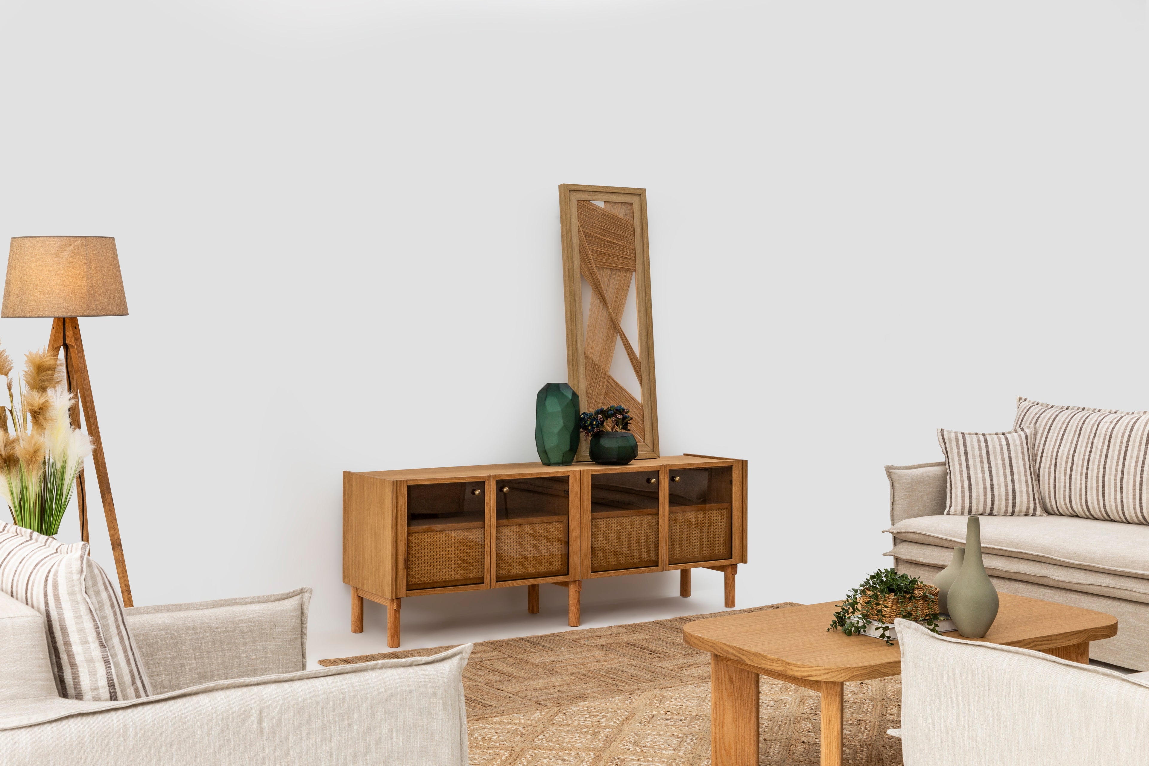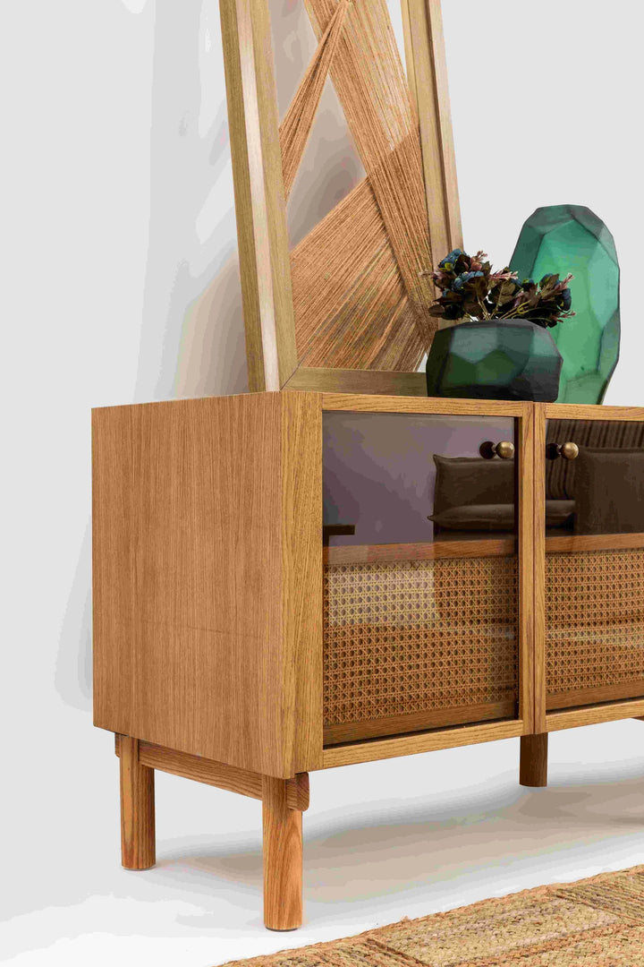 Monaco TV ünitesi, sade formu ve doğal meşe dokusuyla yaşam alanlarına dengeli ve sıcak bir atmosfer kazandırır.