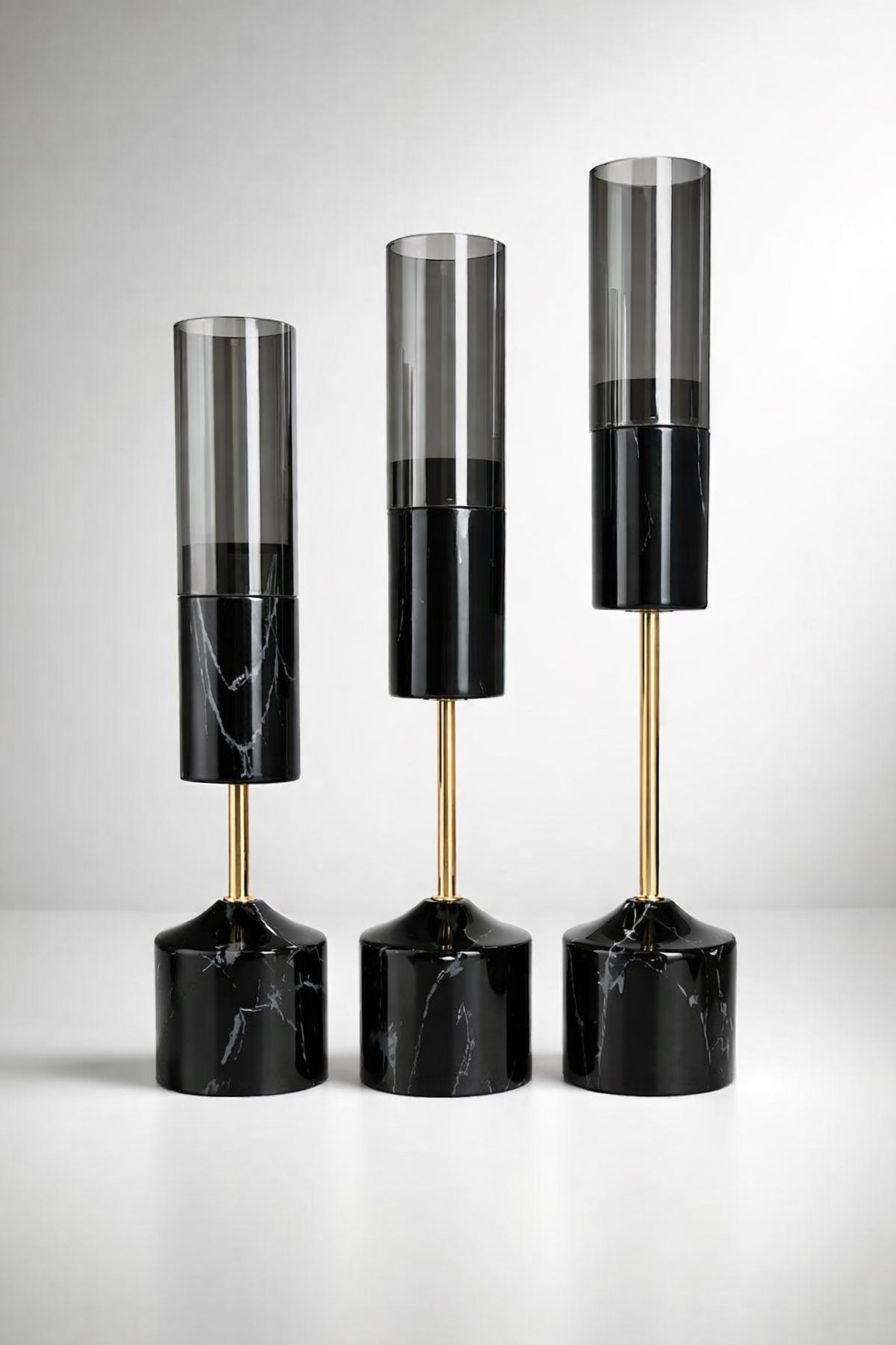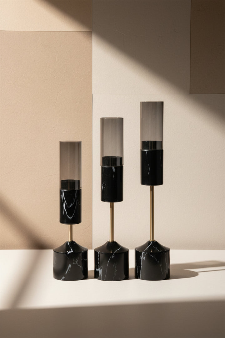 3’lü Siyah Cam Mumluk Seti